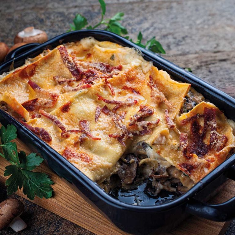 Eine tolle Lasagne aus Bacon und Champignons