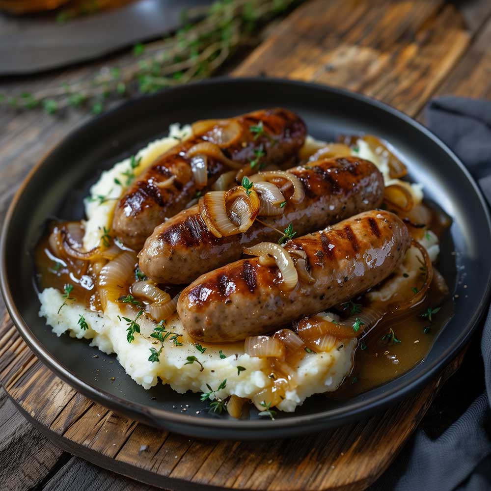 Eine Spezialität aus England aus Bratwürsten und Püree