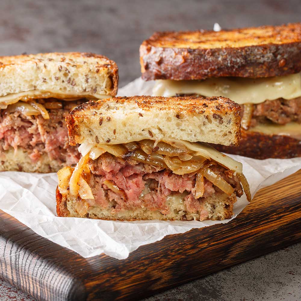 Corned Beef Sandwich mit karamellisierten Zwiebeln
