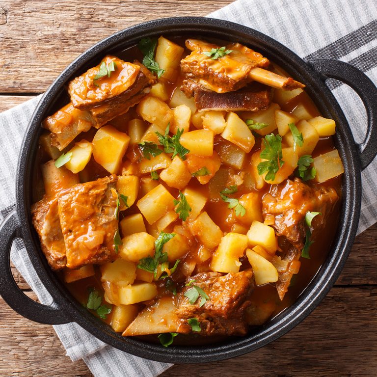 Schweinebauch mit Kartoffeln in Petersiliensoße