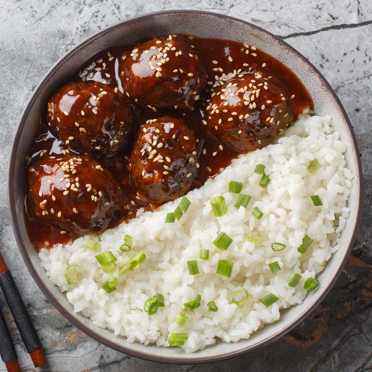 Für die Soße Sojasoße, Limettensaft, Zucker, 2 EL Wasser und Hoisin-Soße in die Pfanne geben, vermischen und unter Rühren aufkochen. Etwas Soße abnehmen, Maisstärke darin einrühren und anschließend in der restlichen Soße glattrühren. 2 Minuten köcheln lassen. Fleischbällchen in die Soße geben und unter Wenden für weitere 3 Minuten köcheln lassen. Fleischbällchen, Soße und Reis auf Tellern anrichten und mit dem Grün der Frühlingszwiebel und Sesam bestreuen.