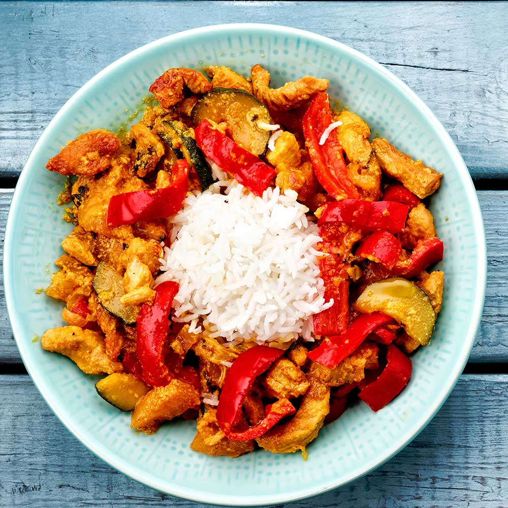 Curry aus Hähnchenbrustfilet und Reis