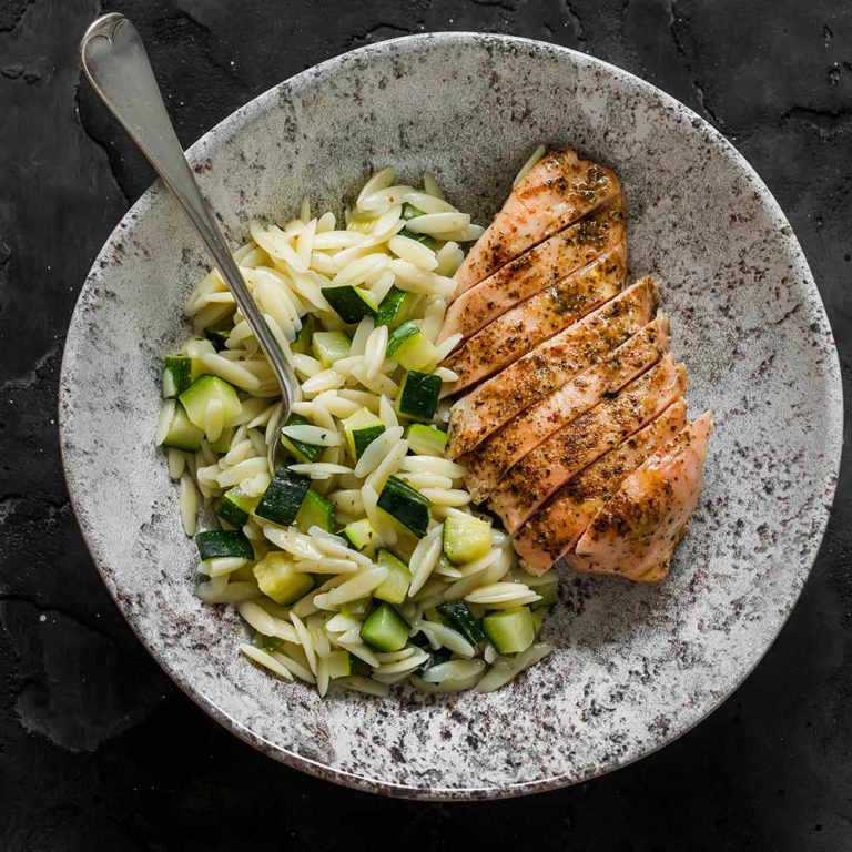 Hähnchenbrustfilets und Orzo-Nudeln mit Zucchini