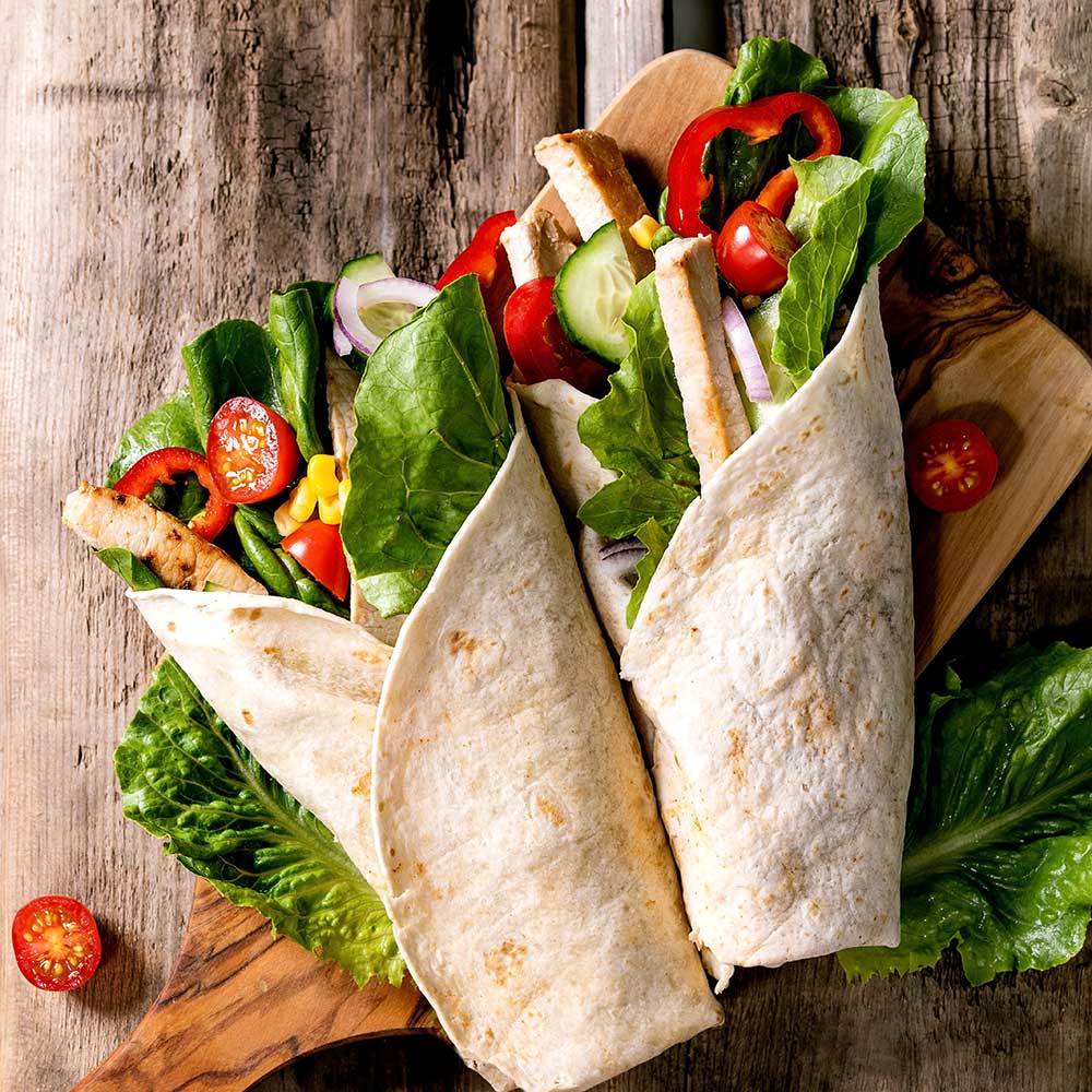 Hähnchenbrustfilets in Wraps mit Joghurtdip