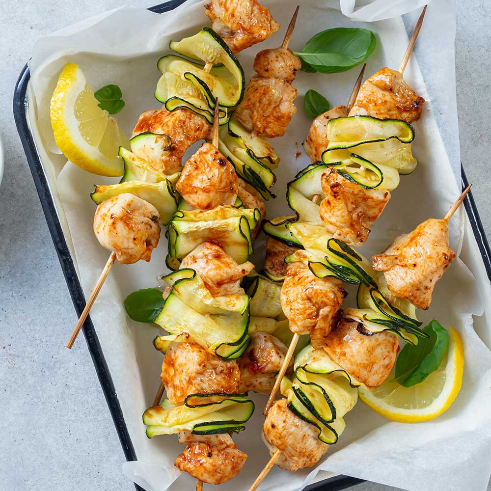 Spieße aus Hähnchenbrustfilet und Zucchini