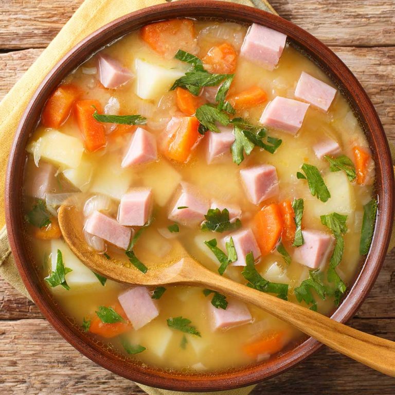 Leberkäse in einer köstlichen Gemüsesuppe