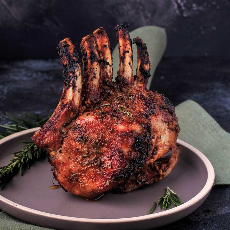 Ofen auf 160 °C Ober-/Unterhitze vorheizen. Fleisch in einer großen Pfanne oder im Bräter von allen Seiten kräftig anbraten. In den Ofen geben und ca. 1 1/2 bis 2 Stunden garen, (Kerntemperatur 65–68 °C). Währenddessen ab und zu mit eigenem Bratensaft übergießen. Dazu passen Rosmarinkartoffeln oder Kartoffelgratin.