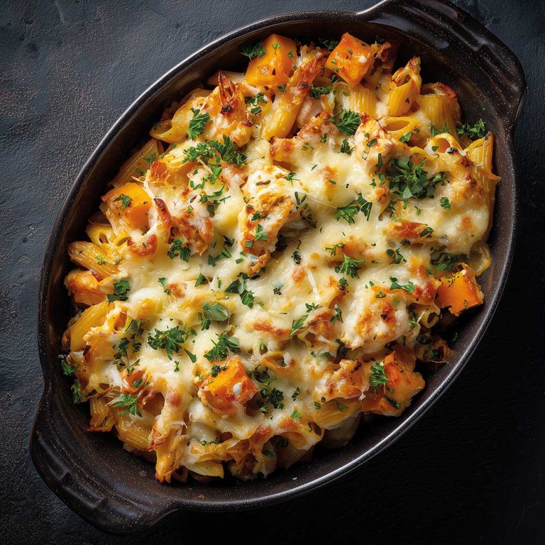 Nudelauflauf mit Hähnchen und Kürbis