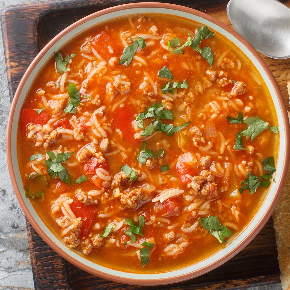 Reis zugeben und weitere 15 Minuten garen. Sahne oder Crème fraîche untermischen und abschmecken. Mit frischer Petersilie oder etwas Paprikapulver bestreuen.