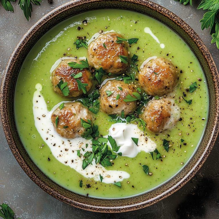 Selbstgemachte Hackbällchen in einer Zucchinisuppe
